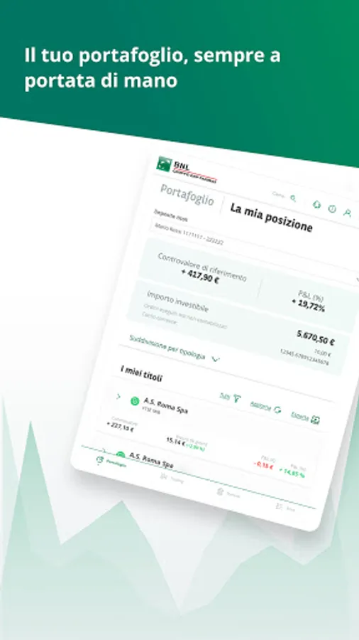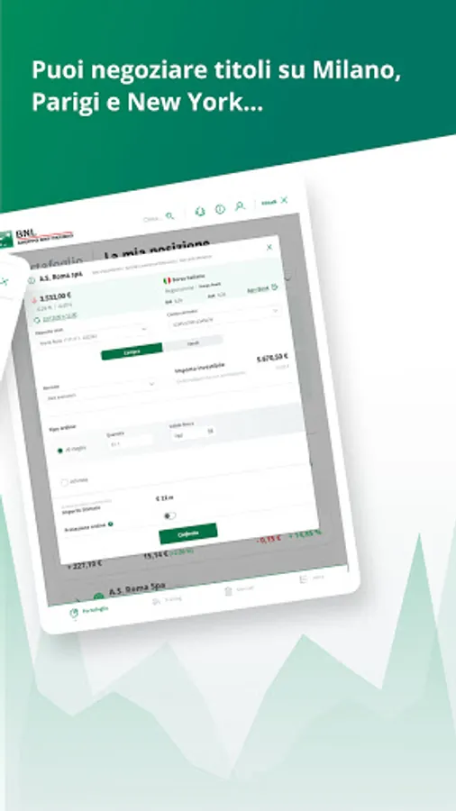 BNL presents its first app dedicated to the online trading: Trading with BNL can operate in mobility in the financial markets, but also the position of your portfolios anywhere, anytime.