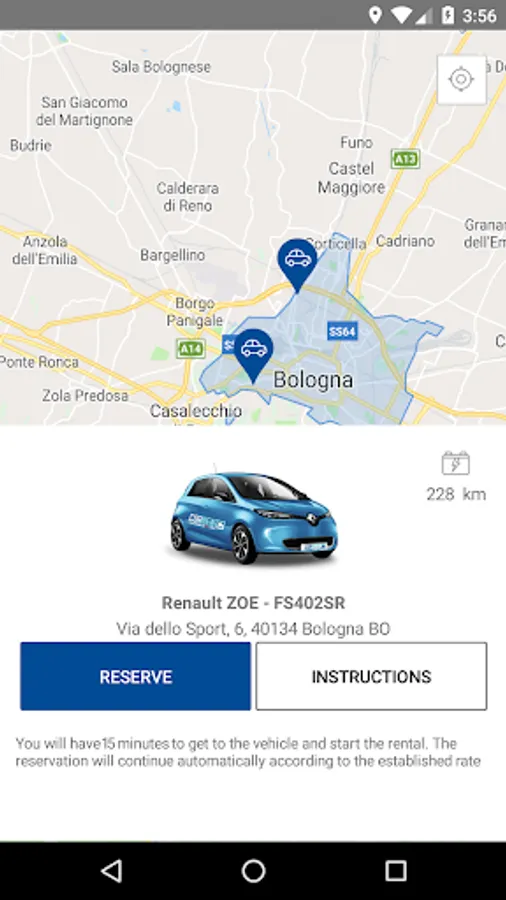 Drive it and park it on blue stalls, on residents places (in Bologna and Casalecchio) or any open area, reachable and allowed by traffic laws.