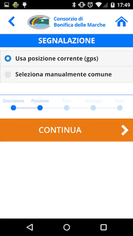 The application allows you to request an inspection to issues related to routine maintenance on the drainage network of the Marche Region.