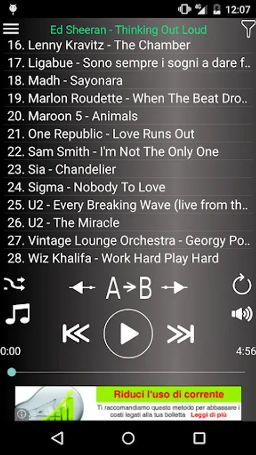 * always wake up: the screen it's always bright when the App is playing (optional)