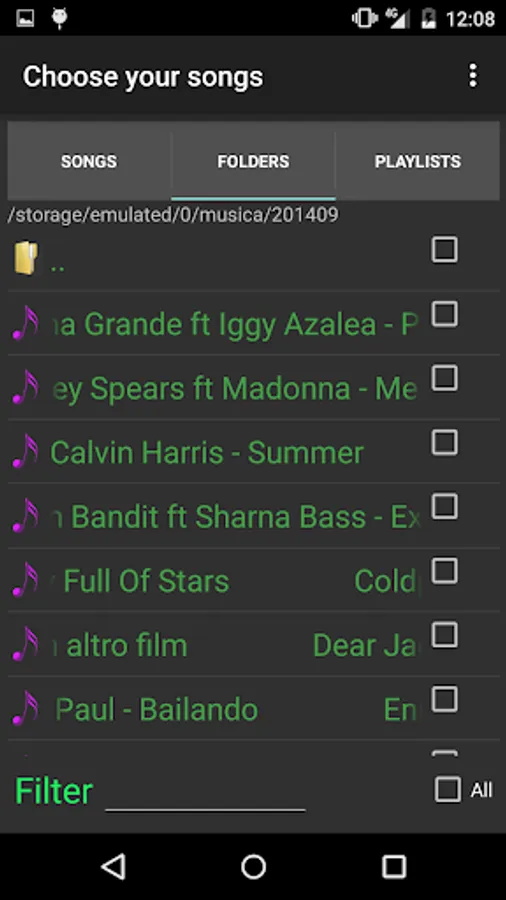 * show simple tabs to choose songs (compatible from Android 1.4 to 4.0.x !)