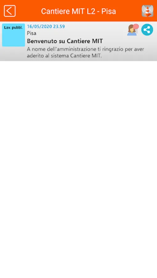 The App 'MIT Shipyard Lot 2 - Pisa' is intended to keep citizens and road users informed in the presence of medium or long-term construction sites. The companies and those in charge of the works will be able to provide notifications, documentation, information on the progress of the works and the closure or partial usability of the viability concerned via the App.