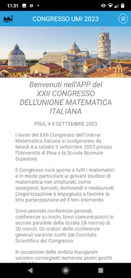 APP for the UMI 2023 congress of the Italian Mathematical Union in Pisa