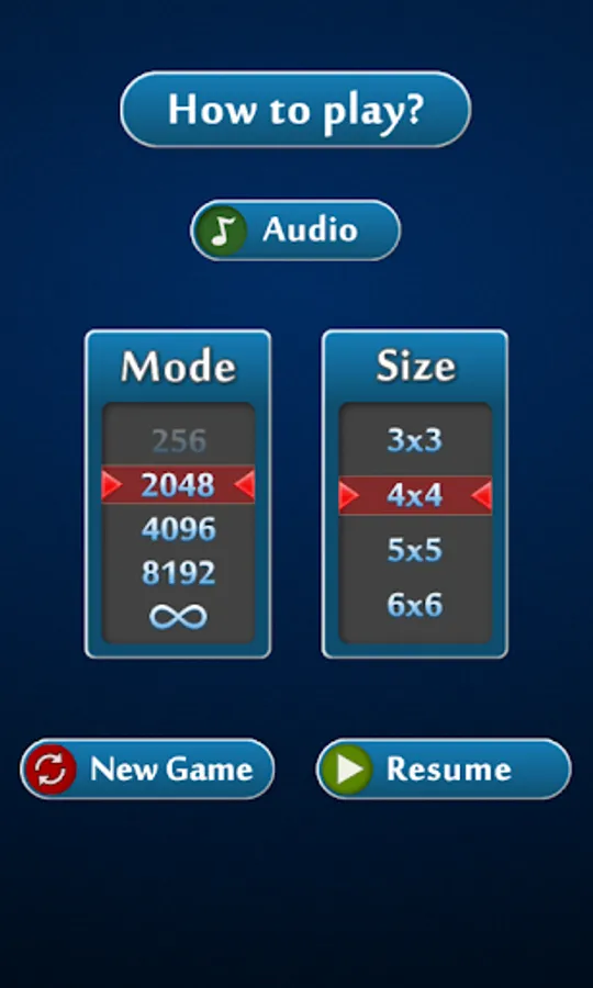 - Select custom goals (Mode) 256, 2048, 4096, 8192 and Infinite.