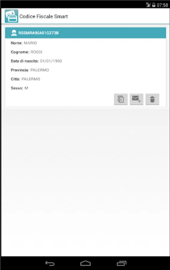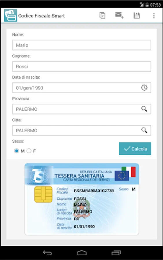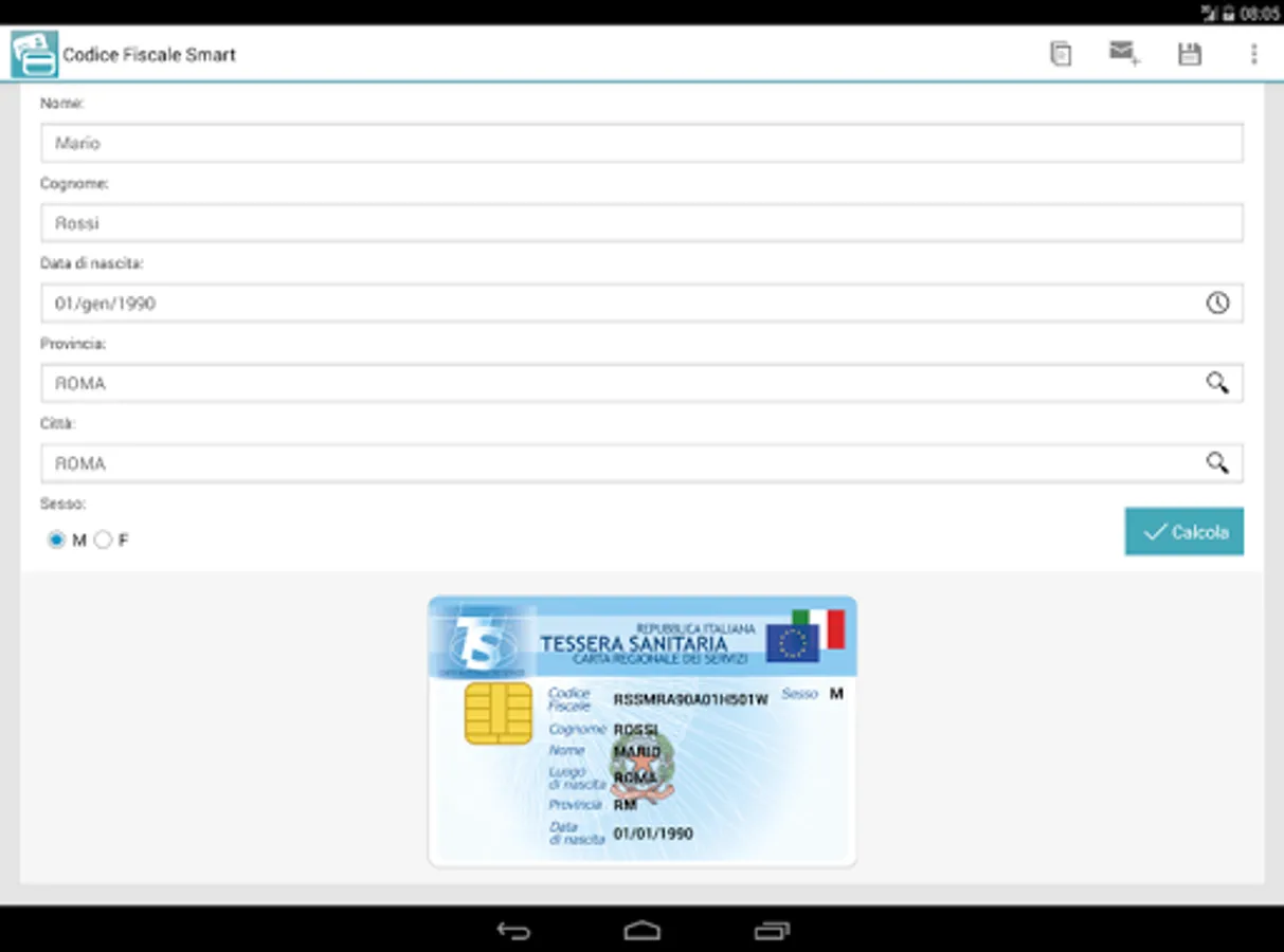 Through the Tax Code Smart is possible to make the generation of the tax code on medical card directly from your Android device. In addition, the app is characterized by minimal graphics, allows saving of codes in memory, copy them to the clipboard and sending via e-mail. The database is updated to the latest publication Istat data. The app will be constantly updated to integrate new functionality or to fix any problems reported.