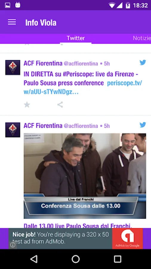 Only with info Viola you can have all the news, tweets, radio speaking of Fiorentina in one app.
