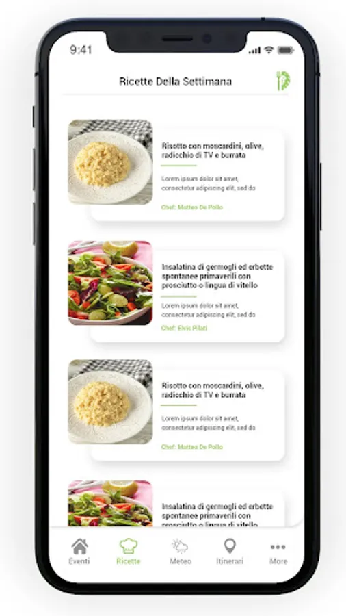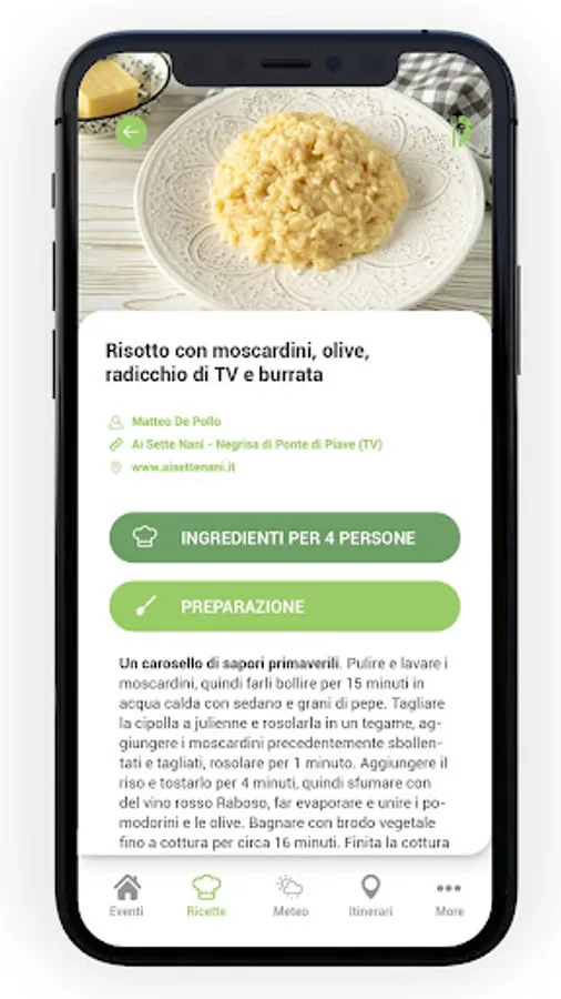 The App provides a recipe per week explained in all his details, recommended and made by Venetian restaurants in a specific period of the year.