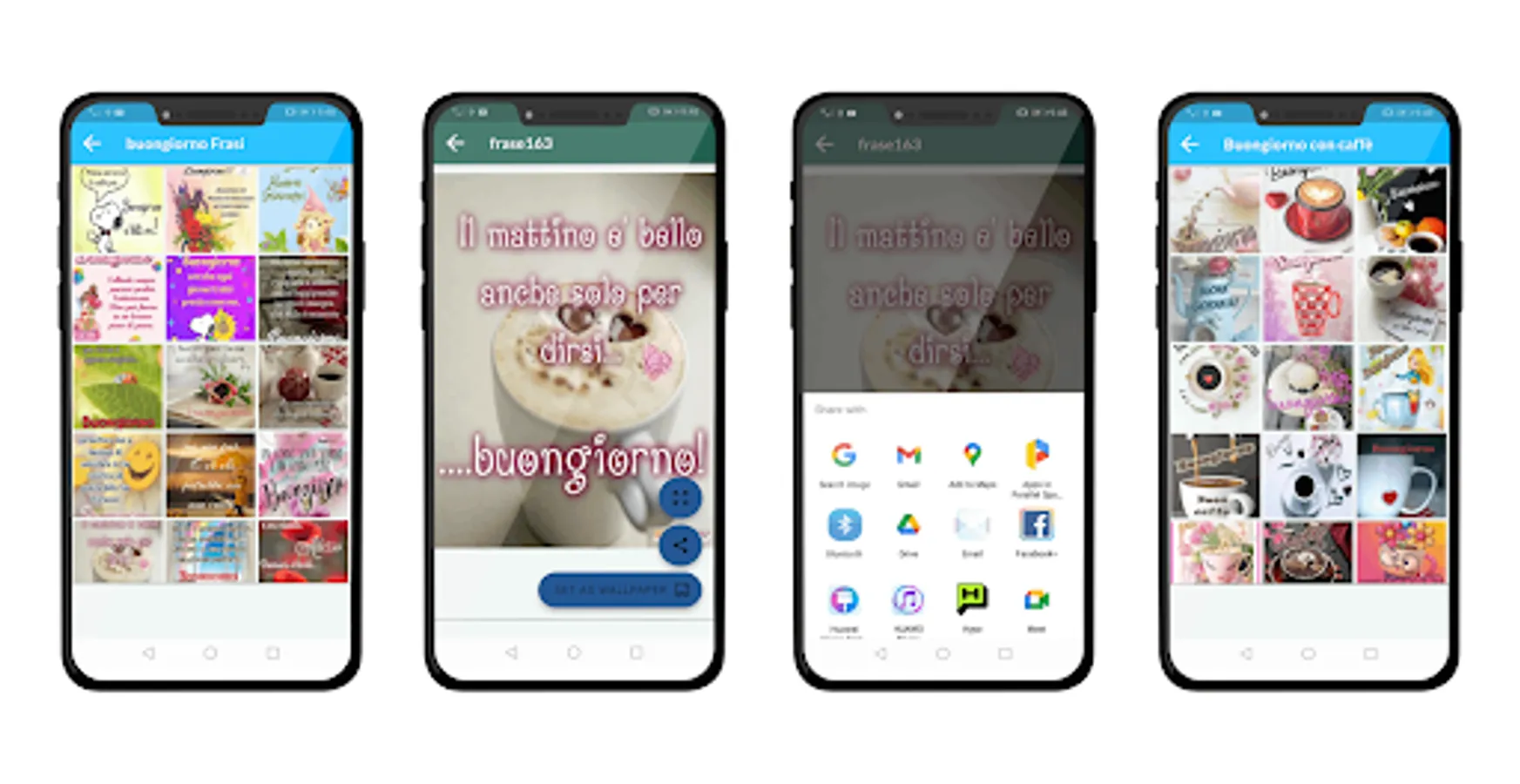 2. second category " free good morning phrases " : Start the day in a positive and motivated way with our app , the best collection of good morning wishes and phrases , inspirational quotes. You can share your good mornings with your family, friends and loved ones.