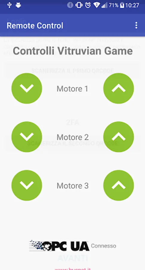 The app REMOTE VITRUVIAN is a DEMO which allows you to take complete control of the movement of the motors of the Vitruvian Game or other devices.