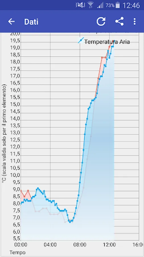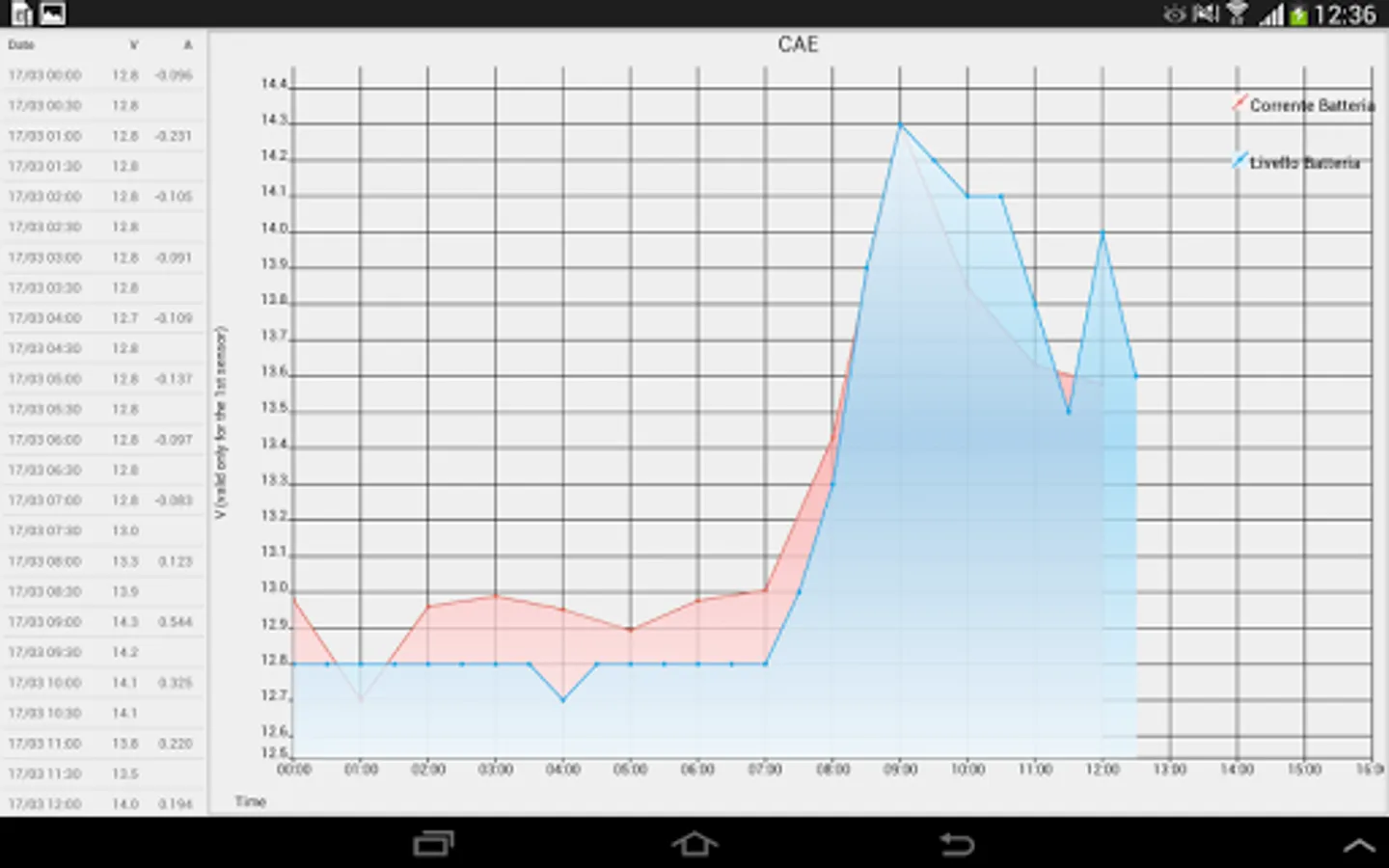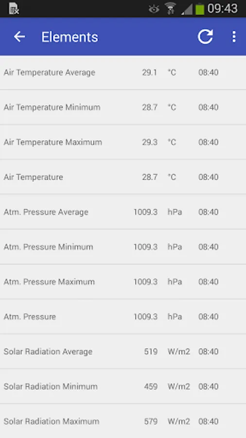 The Android app by CAE that displays hydro-meteorological data acquired from the Mhas station.