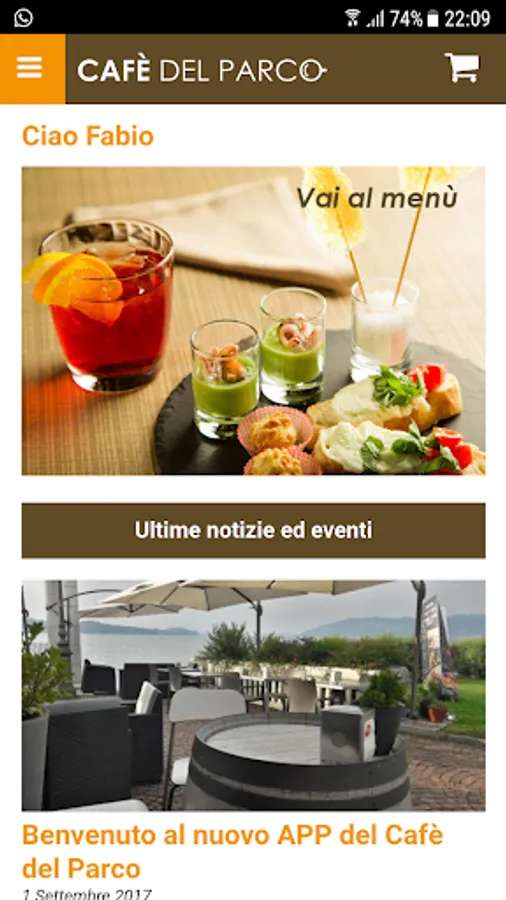 With the application of the Café in the Park you can see the updated menu, book and order different dishes available and also receive notifications about events and promotions.