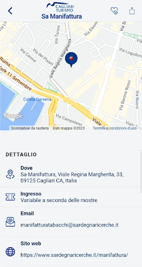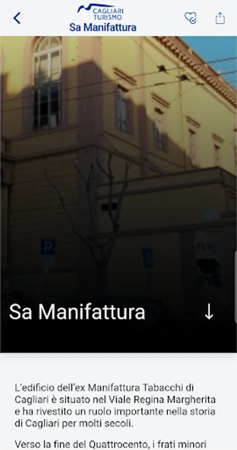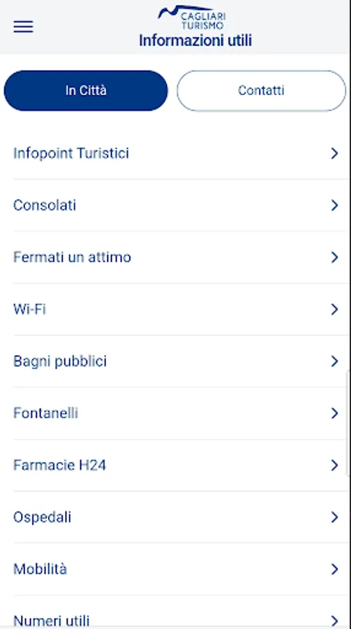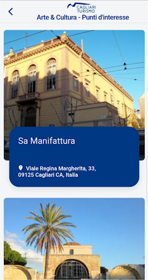 The app, like the tourism portal, is the official source of tourist information for the municipality of Cagliari, and contains all the information regarding the major attractions of the city, such as museums, parks and gardens, cinemas, theatres, markets, historical panoramic views, churches, beaches and natural areas of greatest interest.