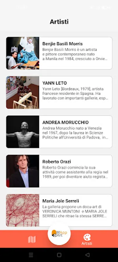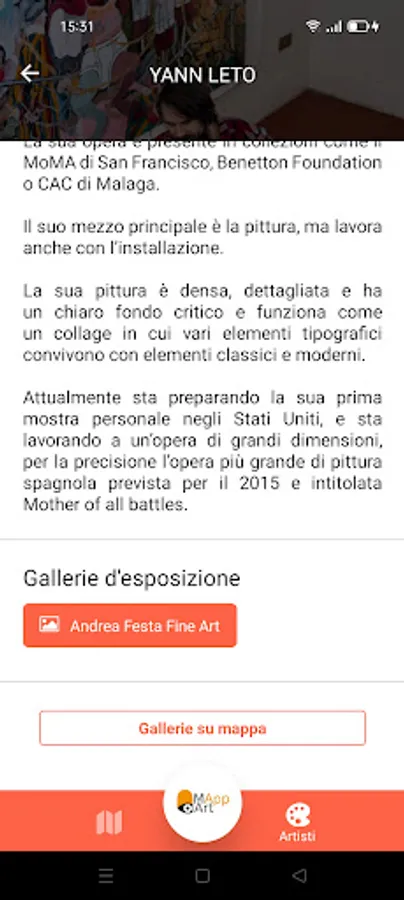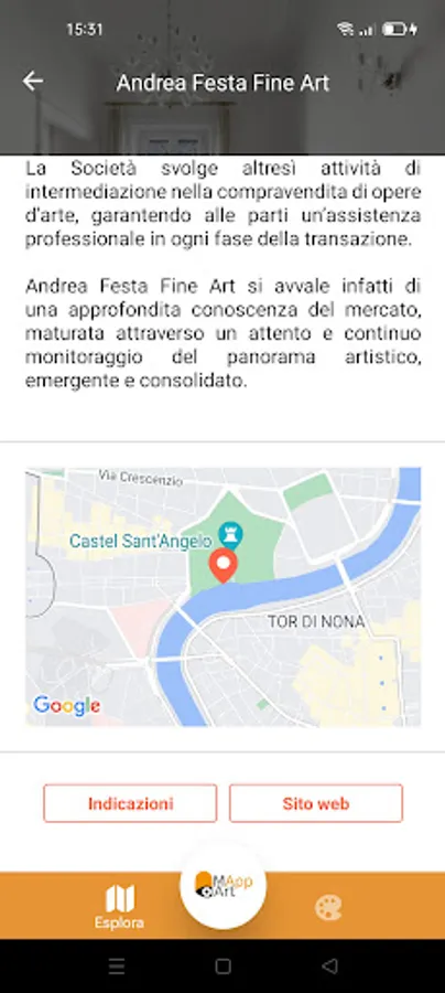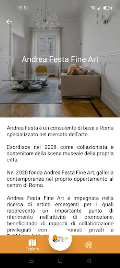 The new totally free application, created with the contribution of the Lazio Region for the OPEN GALLERY - DIGITAL EDITION project. The App was created with the aim of mapping and making known, to residents and tourists, the places and businesses of the art of Lazio. The App offers businesses in the area the opportunity to publish a series of additional information on them such as: special events of the galleries (opening, finissage, contest, etc.), information on the works and artists on display and much other. Furthermore, the OPEN GALLERY - DIGITAL EDITION MAppArt application will also be useful for starting a profitable digital archiving process of the works and information on the artists involved in this event, with a view to creating a database of the works of art produced or exhibited in the Region. The practice of digitization will provide young people with a platform with interactive functions such as the possibility of getting to know the works of other artists, where to find them, the history of their creation and other curiosities.