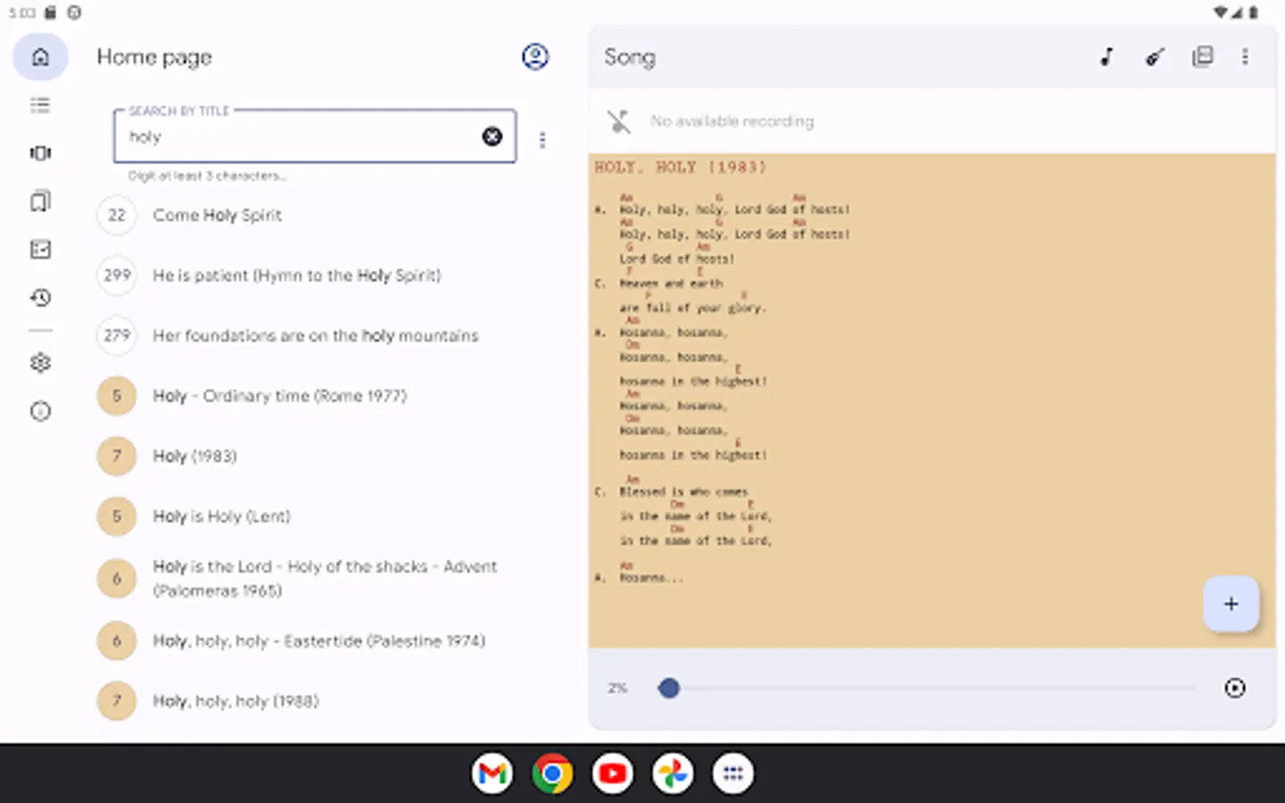 * Ricerca all'interno dei testi!! -- > Funzionamento: vengono inclusi nei risultati solo i canti in cui sono presenti tutte le parole inserite (senza contare quelle di 2 lettere)