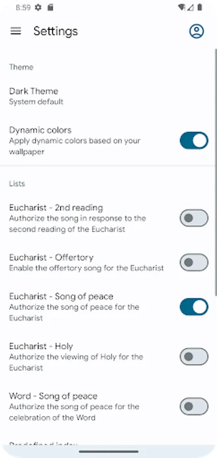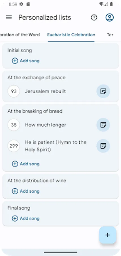 *Liste predefinite per la preparazione della celebrazione della parola e dell'Eucarestia, con: