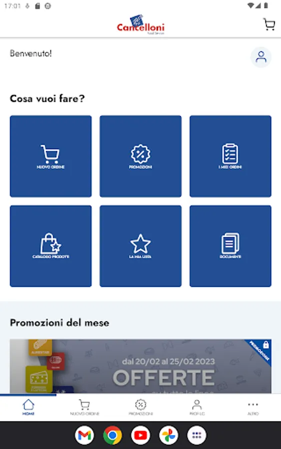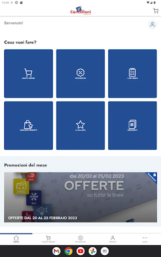 With the Cancelloni app you can reorder from your history at any time and be constantly updated on the status of your orders in progress. You will be able to consult the product catalog independently, preview the new products in the assortment, request estimates from your trusted agent and take advantage of current promotions.
