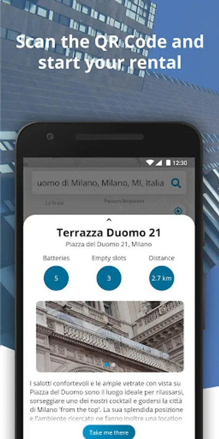 Low battery? Rent a CARICAMI power bank in one of our stations in Milan, use it to charge your phone and then return it to any CARICAMI station. Thanks to our app, it's a matter of seconds.