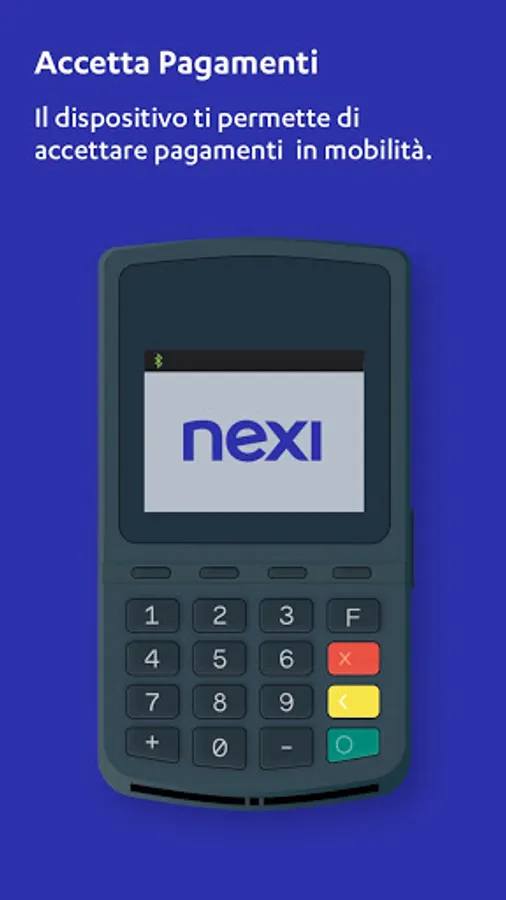 Nexi Mobile POS is a tool dedicated to Nexi merchants who have a Link 2500 or ICMP device to accept payments in and out of the point of sale via smartphone in a convenient and secure way with credit cards, debit cards, prepaid cards, PagoBancomat and NFC payments.