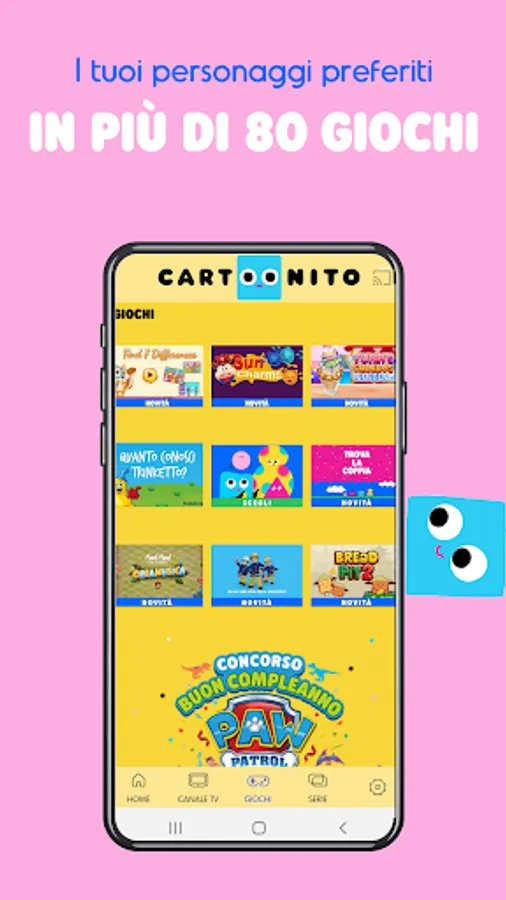 And then: games, exclusive content, episodes of many cartoons in English and Italian, special compilations, all at your fingertips!