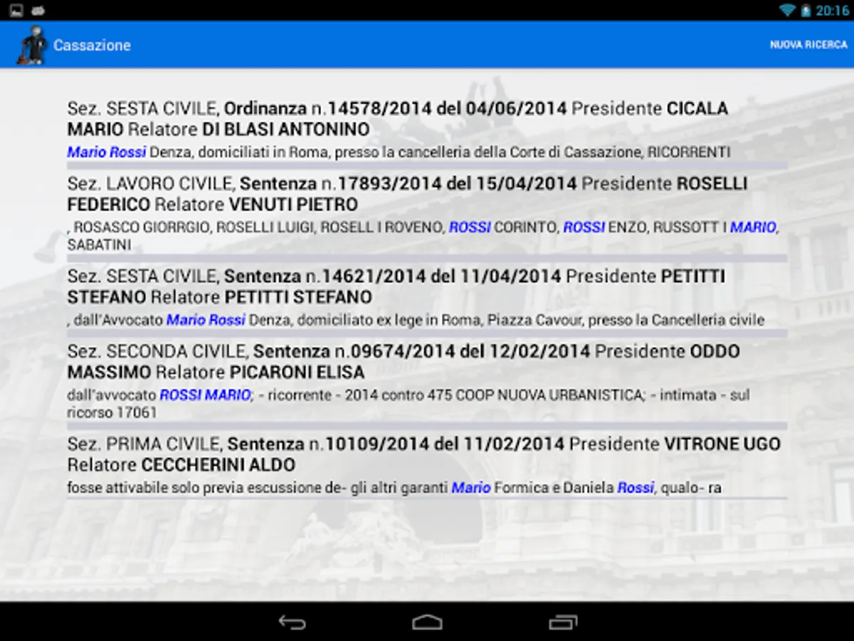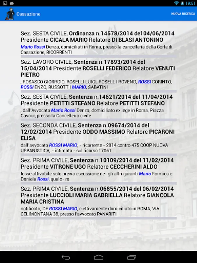 The app allows you to search the text of all measures published in recent years by the Supreme Court of Cassation, with the ability to see and read the measure sought.