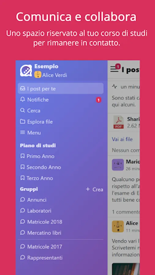 In addition you will have infinite storage space for your files, to collect the most important material such as notes and slides.