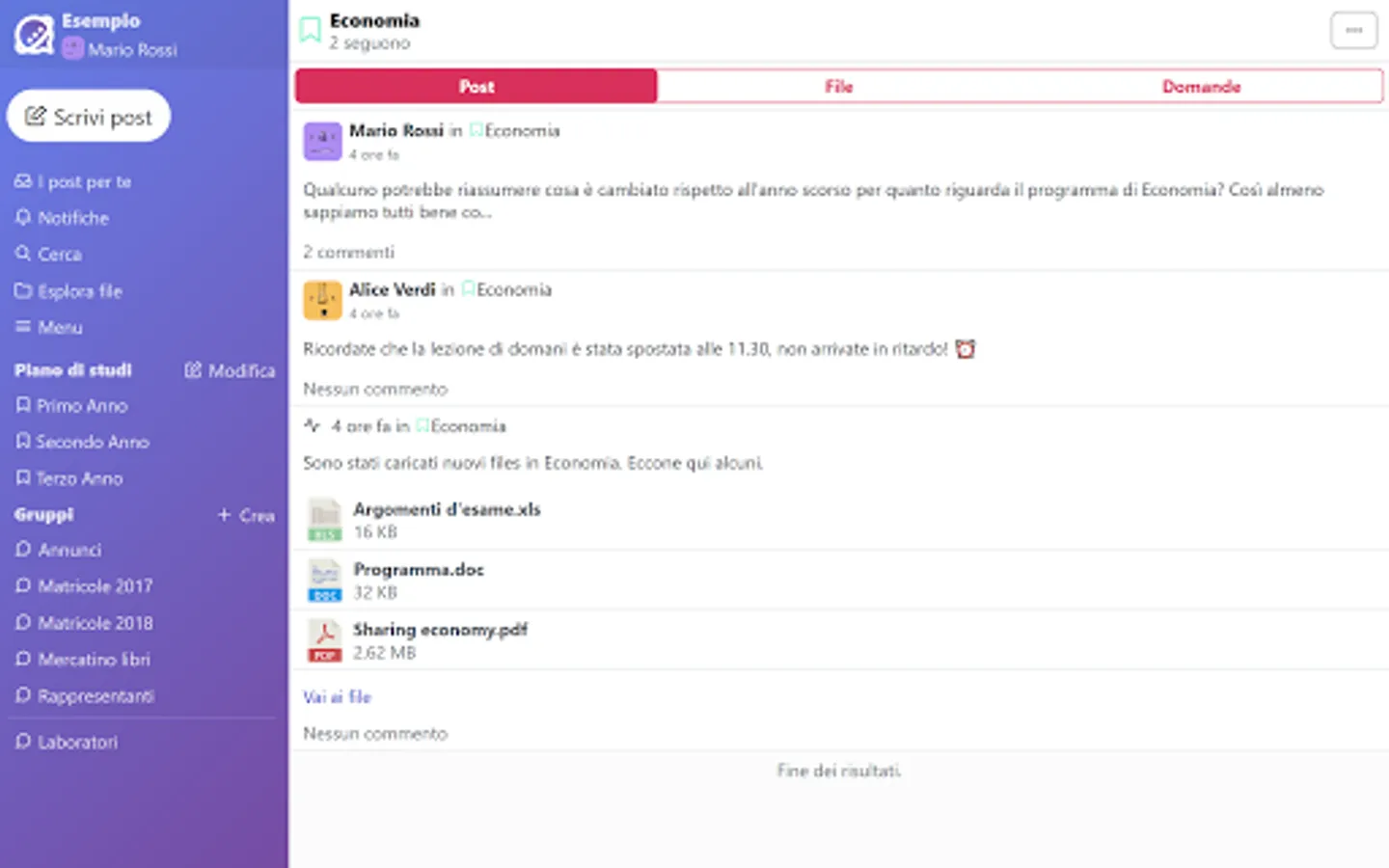 Finally you can collect the questions made by the professors at the exams through a dedicated section.