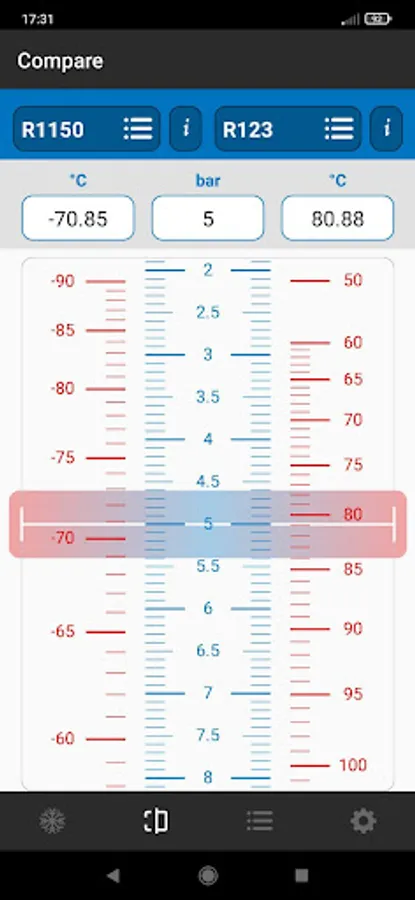The Regolo APP of Castel is able to quickly calculate the relationship between the pressure and the temperature of the most common refrigerant gases in saturation conditions.