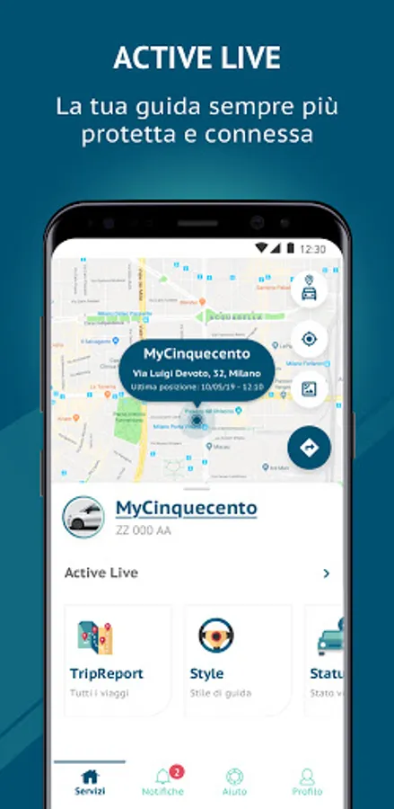 - "Find", thanks to which it is possible to geolocate the vehicle's position in real time (or the last one available). It also provides the path to be able to reach it on foot