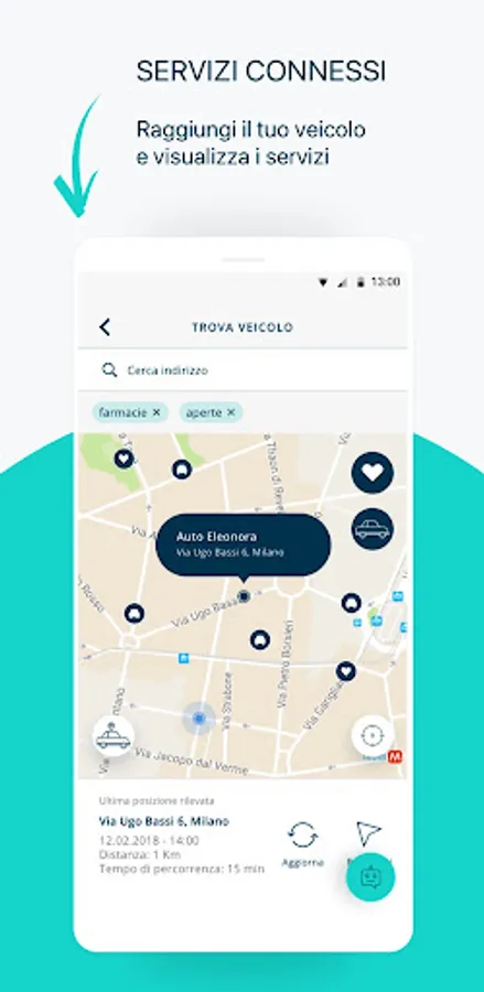 • an interactive map that allows you to locate the authorized centers around you (body shops, glass service centres, installers of satellite devices, health facilities);