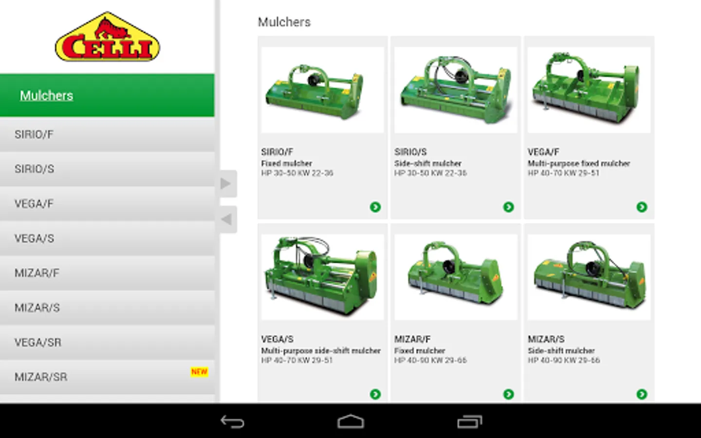 Offline Celli catalog for sales agents, with content synchronized from the site when the device is online.