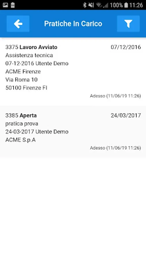The app is interfaced with management of Zucchetti Centro Sistemi (Theseus, AdHoc Revolution) and interfaced to other management.