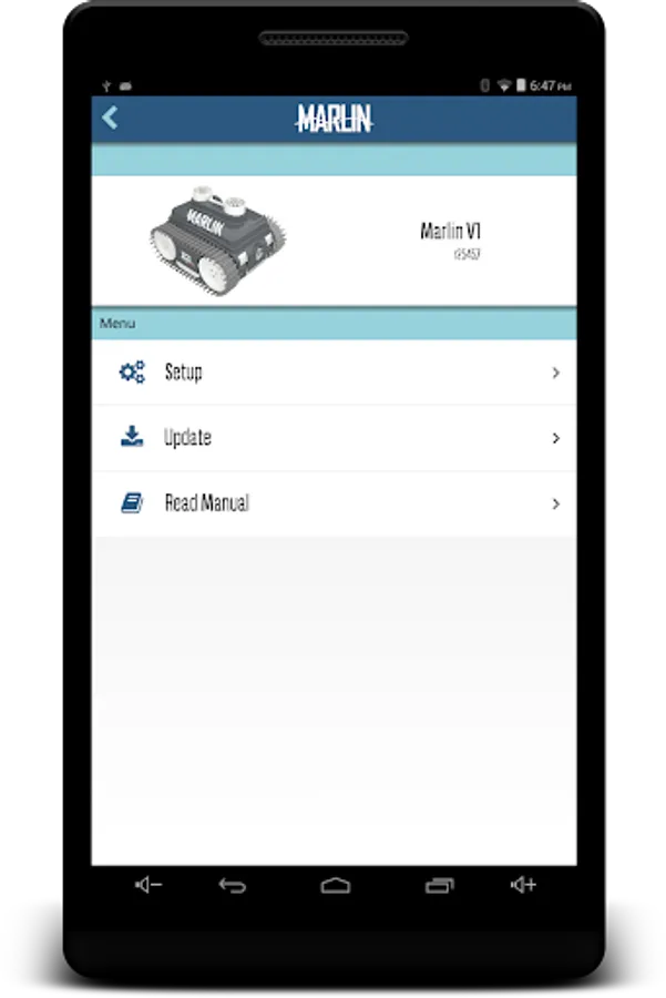 Marlin Remote offers the possibility to consult the user manual, set the settings of the robot , download and install software updates.