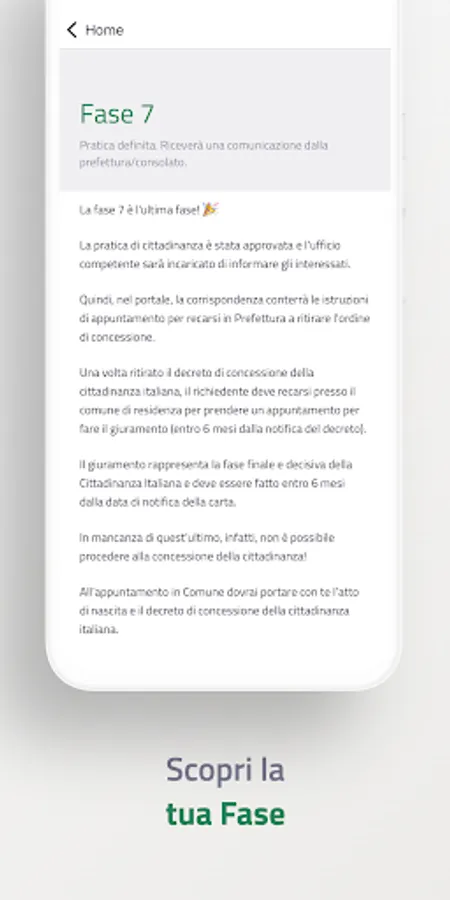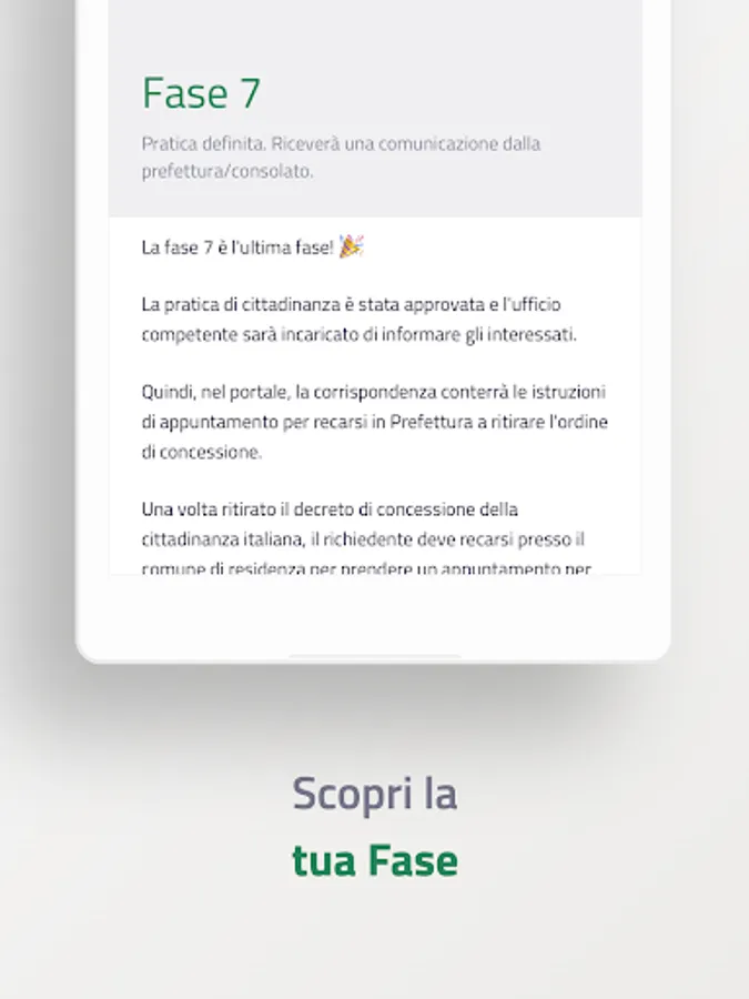 It is also noted that the CheFase app does not replace the IO app to receive updates of the Italian Citizenship practice. In fact, we recommend that you use the IO app to receive updates in real time.