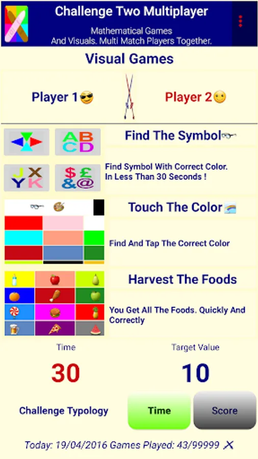 Each typology of game has 2 game modes: Time or Value. The values are customizable.