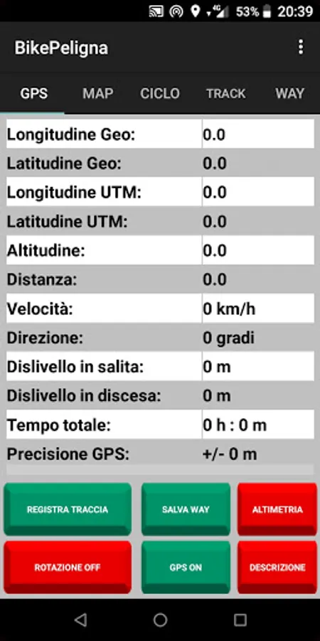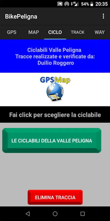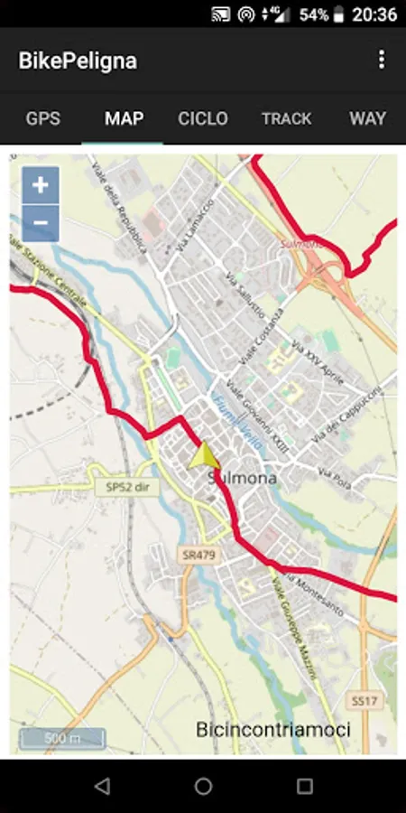App that allows you to follow six cycle paths of the Peligna Valley: Ciclovidia, del Sagittario, Bicincontriamoci, Terre dei Peligni, Gizio and Vella. The cyclist can follow on the smartphone screen the red traces that indicate the route on a map of the Peligna Valley (All GPS data of the route are also provided: Geo and UTM coordinates, altitude, distance traveled, speed, direction and height differences in up and down. A triangular icon indicates your position, it is possible to zoom the map and also move it, both with the usual Android gesture and with two buttons. The cartography automatically rotates in the direction of travel, or you can lock the rotation and the GPS pointer rotates in the direction of travel.The altimeters of the routes are also provided with a brief description.
