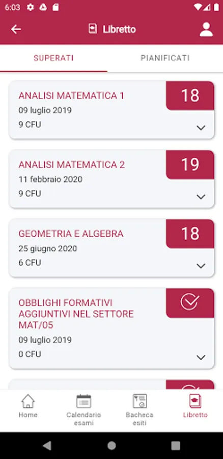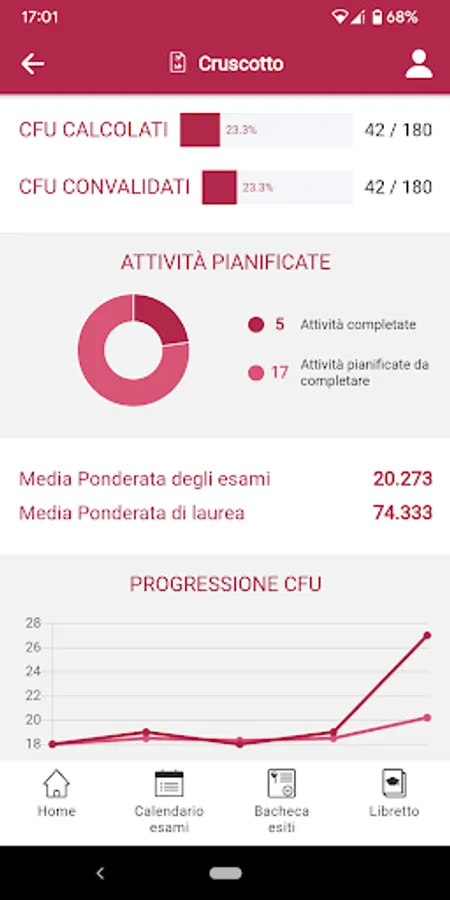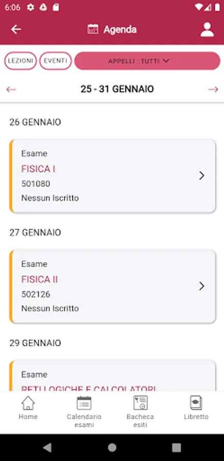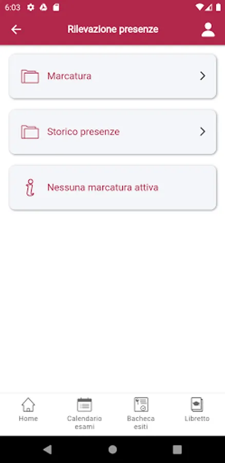 Once logged in, the user will be able to access their profile. Here it will be possible, among other things, to register for an exam, to report one's presence in the classroom at lessons, to be updated on lesson schedules and to have information relating to one's university career.