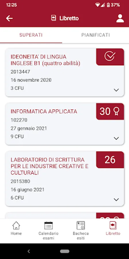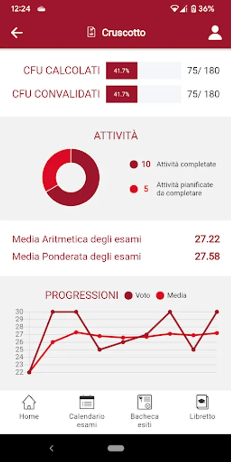 • the record book with display: exams, the curriculum, the average of the grades and credits - university credits earned; such information shall be published in graphics mode;