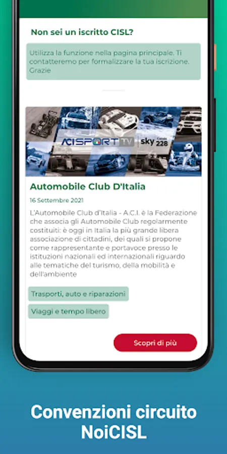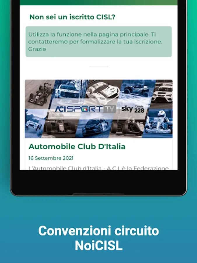 NoiCISL is an App that makes subscribers aware of the agreements in place, the opportunities and contractual protections that our Card offers.