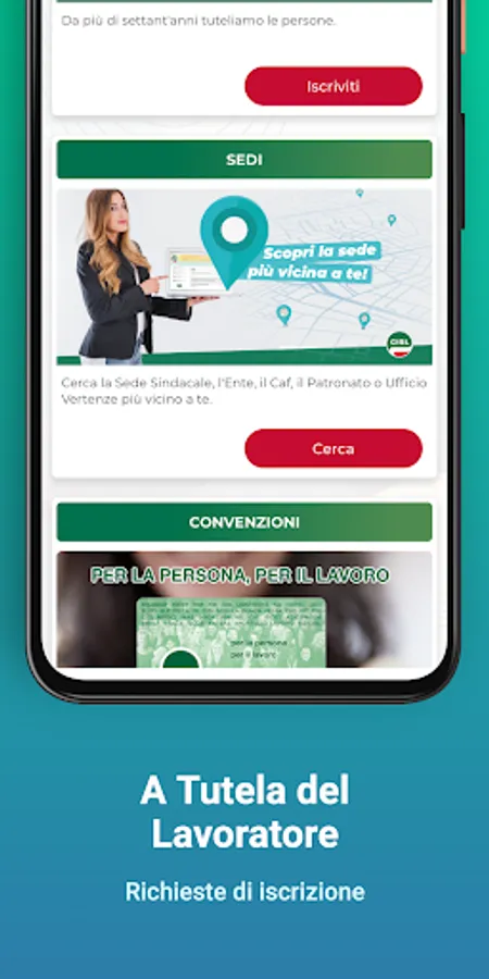 Within the App (or by calling 800.249.307) you will find the constantly updated list of services and agreements that can be accessed by registering with personal data and the Cisl Card number.