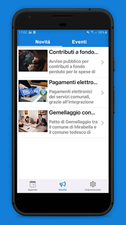 Online service that allows all citizens of the Municipality of Mirabella Imbaccari to view the latest news, notices and events published by the institution.