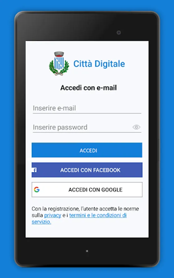 To use the app it is not necessary to register unless you want to use the advanced services. For greater integration with online services, the SPID of the institutional portal can be associated with the app user.