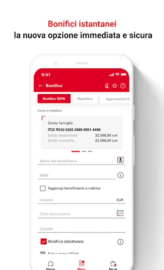 Always ON TIME In addition to being richer in features, the app is also FASTER: for most operations, 1 click is enough, transfers are instantaneous and everything takes place in maximum security.