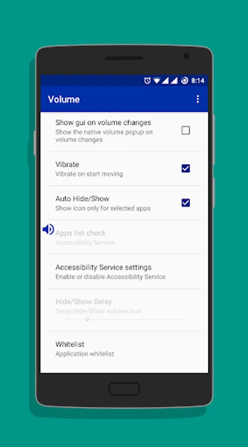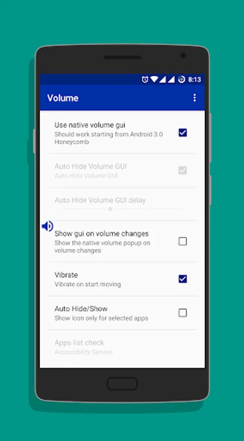 This application adds a floating volume button on the screen. Use it to modify the volume.