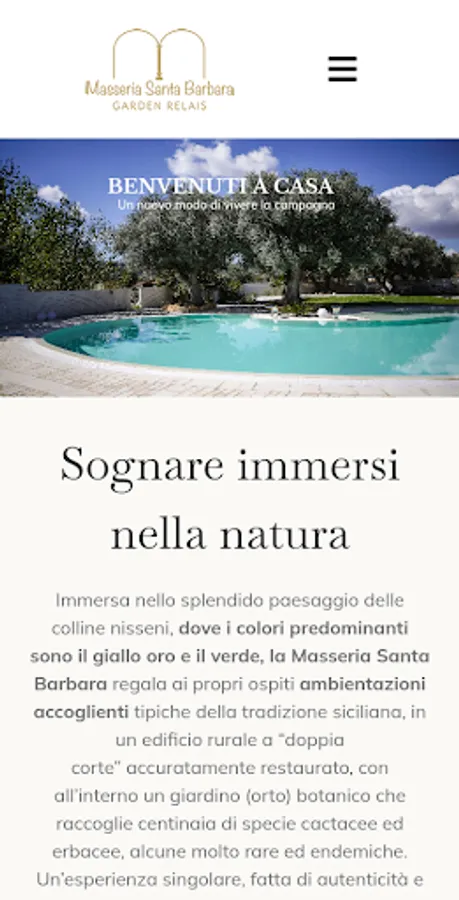 Immersed in the splendid landscape of the Caltanissetta hills, where the predominant colors are golden yellow and green, Masseria Santa Barbara offers its guests welcoming settings typical of the Sicilian tradition.