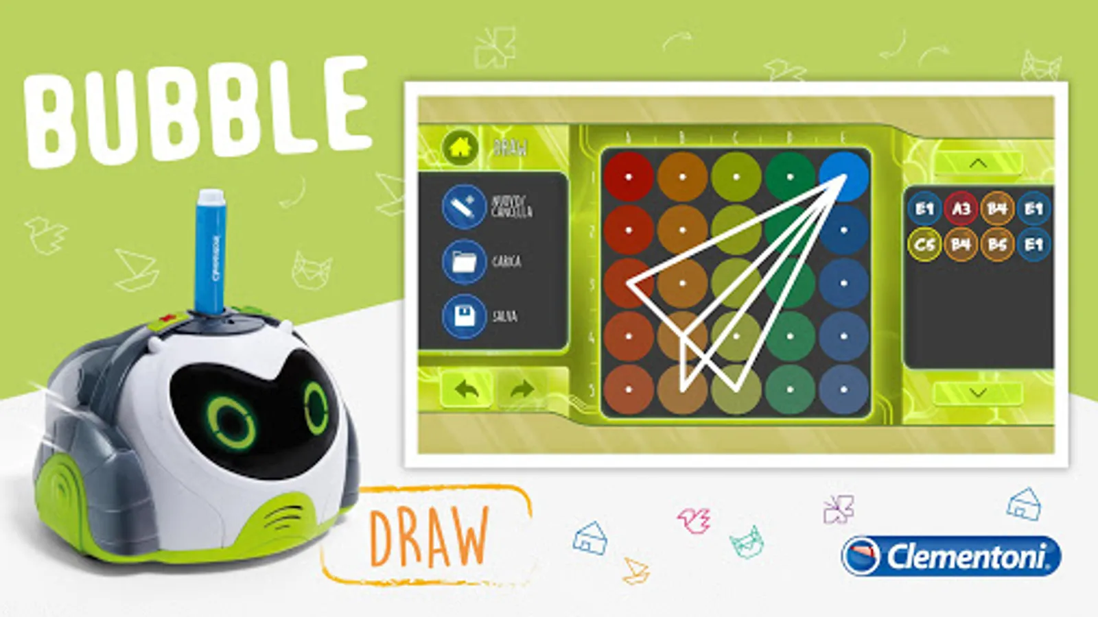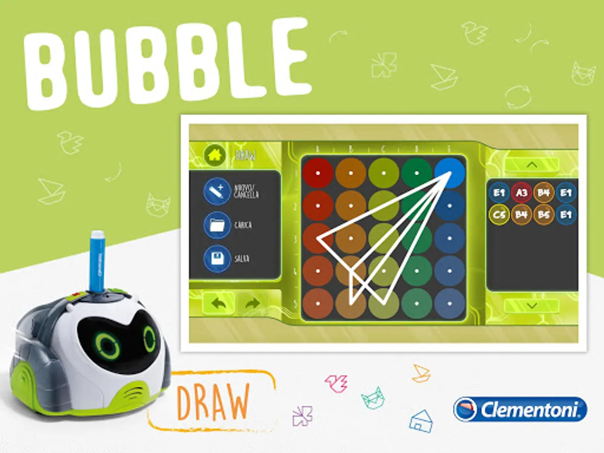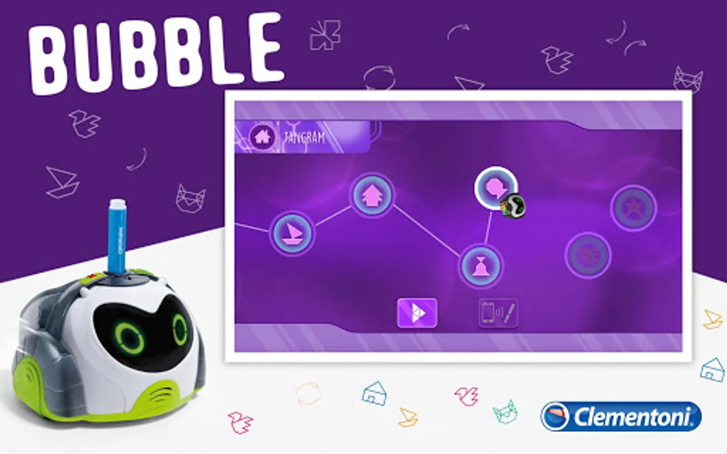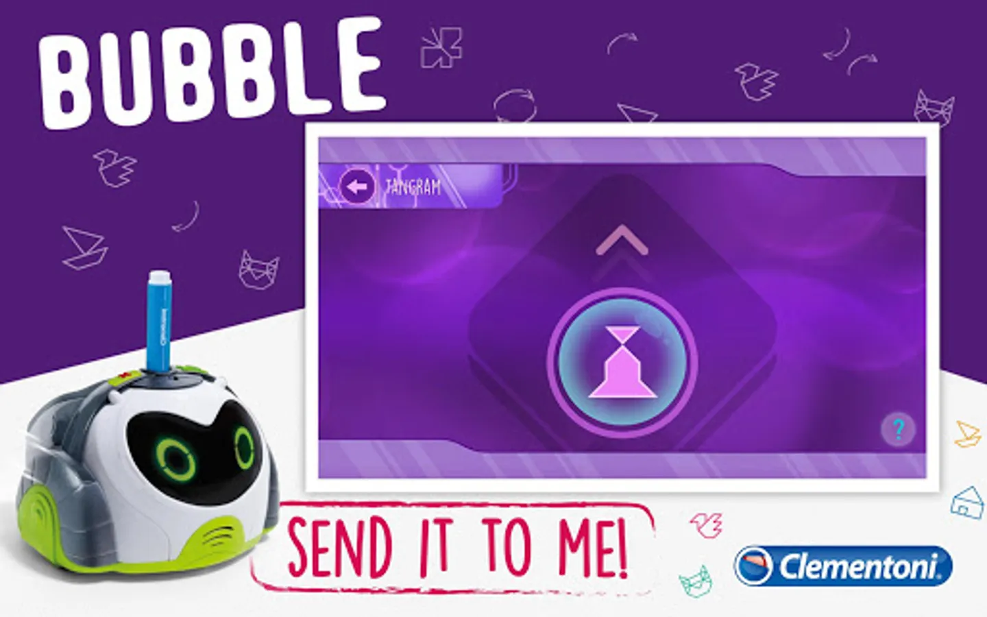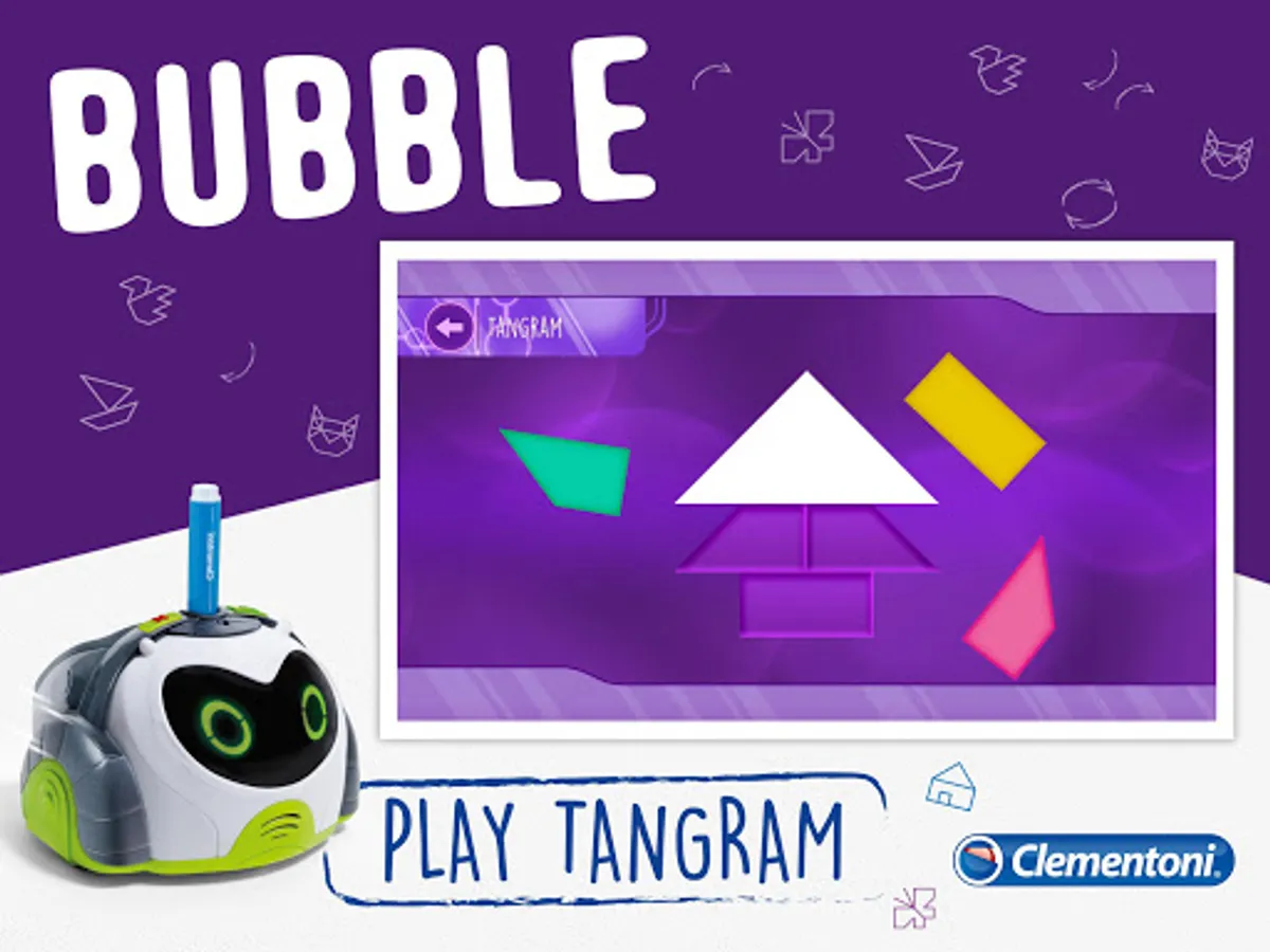 In the TANGRAM area you must compose the figures, which you can then send to BUBBLE so that the robot can draw them."