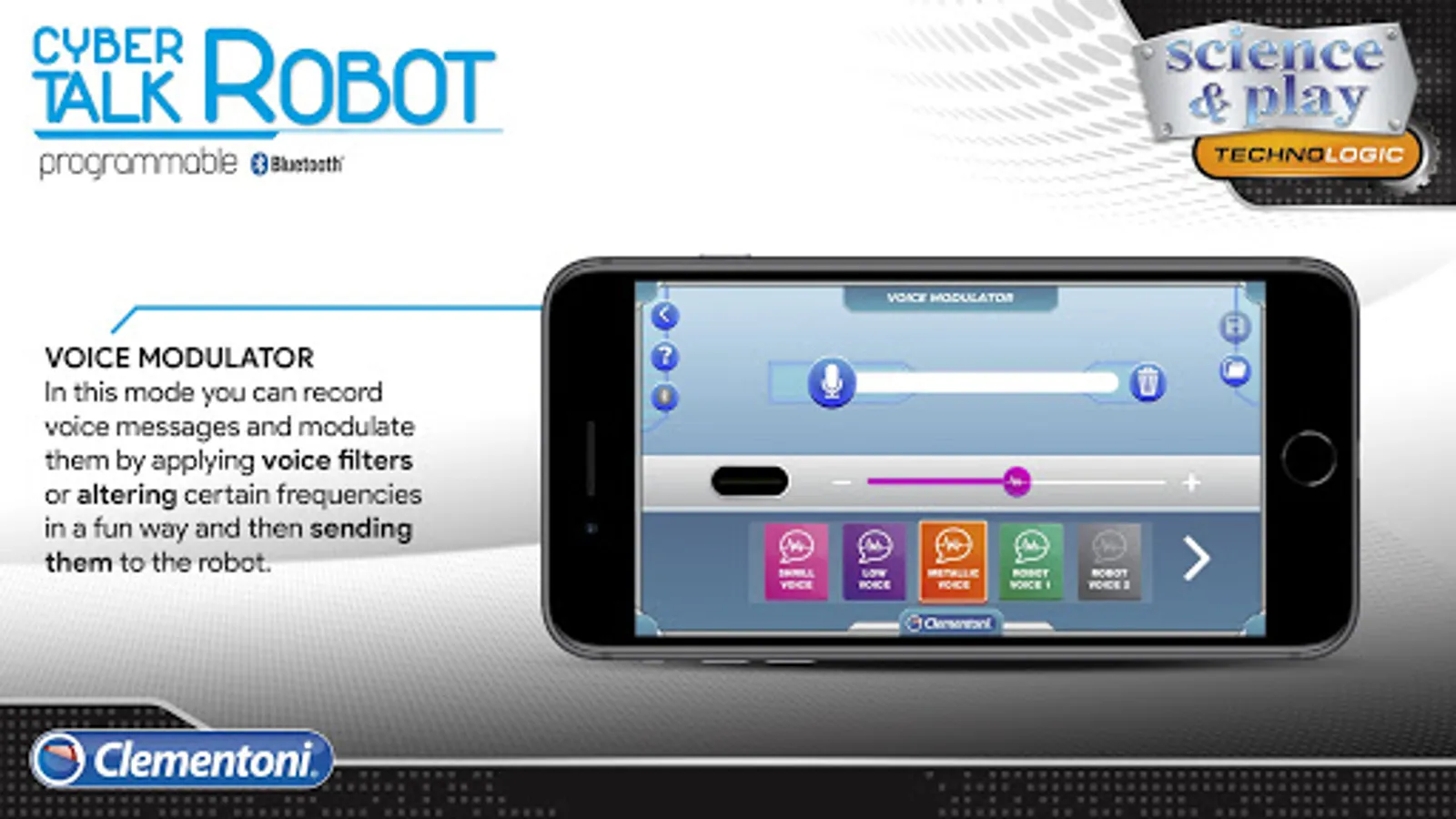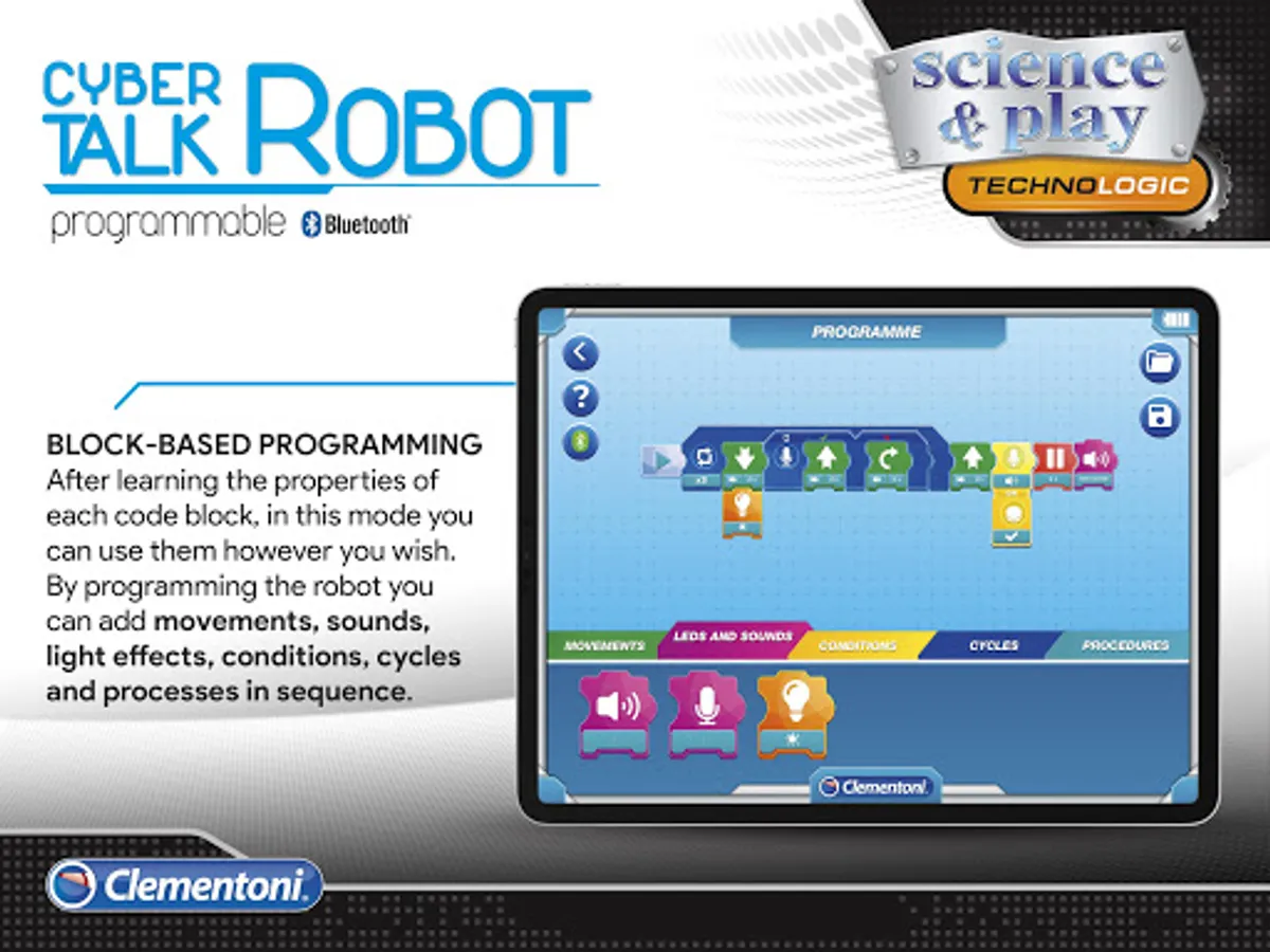Cyber Talk is the perfect combination between fun and educational properties. Through this robot and its programming activities, you can learn the principles of coding – a very important subject that stimulates the mind so that it can solve queries and problems – while having fun by recording, editing and sending voice messages.
