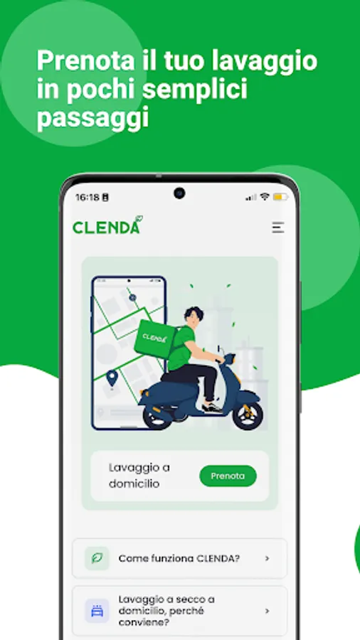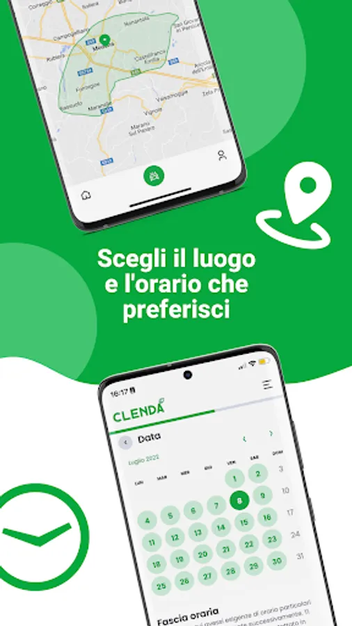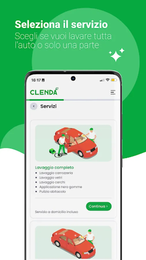 You can book online at www.clenda.it or via the mobile app, you choose where and when to have the car clean.