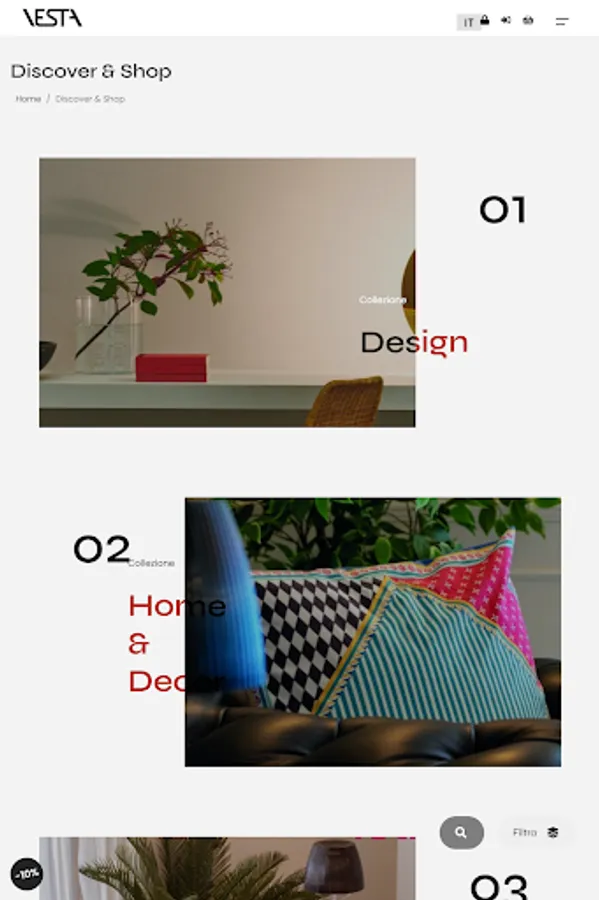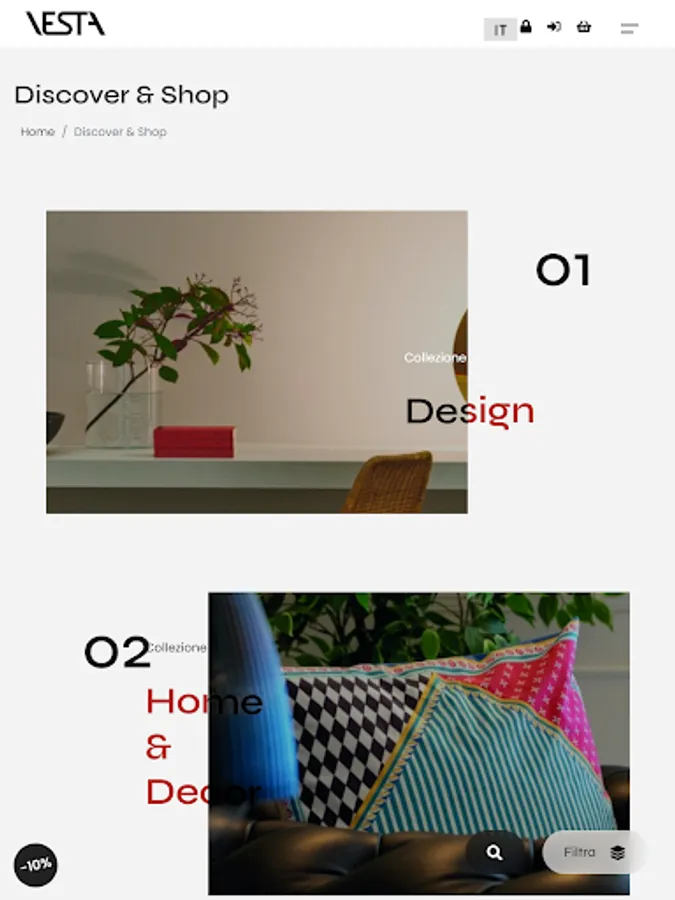Vesta Srl offers its customers an e-commerce to be able to choose the best furnishings, furnishing accessories and interior decorations.