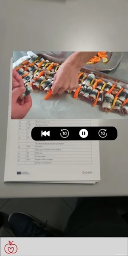 Thanks to the CHEEP app you access to additional contents of the recipe cards. Try to frame the image of a dish in a recipe card for accessing an augmented content characterized by a video describing the main steps in the preparation of the dish. Enjoy your viewing.