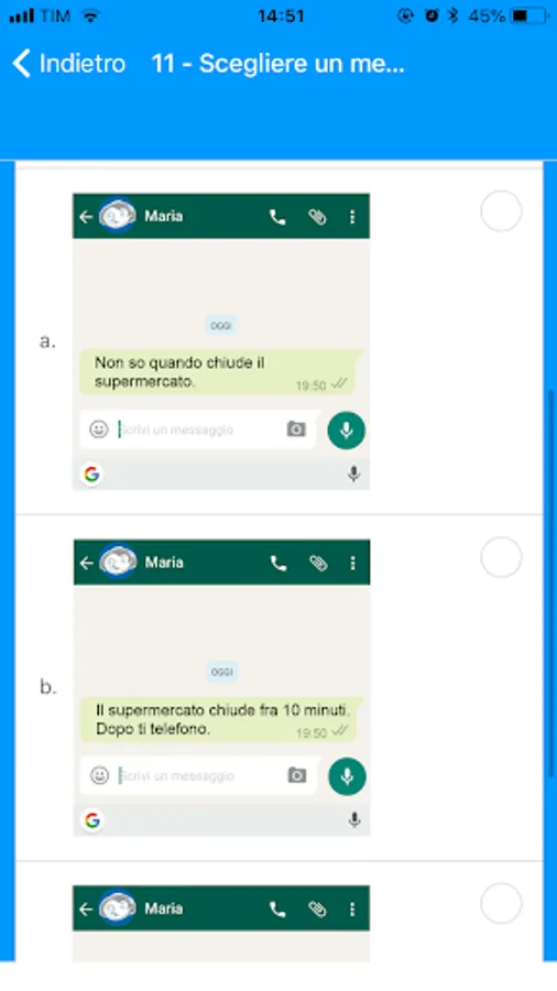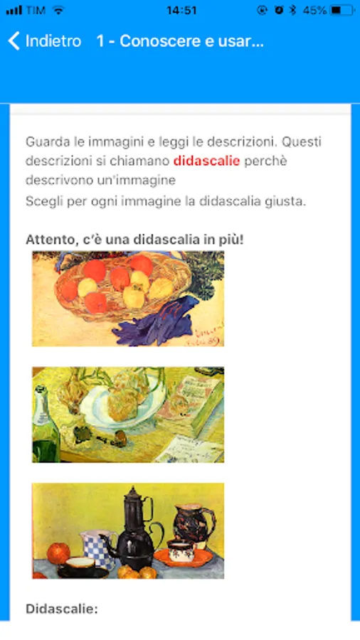 The app offers a series of exercises with increasing difficulty, which provide incentives for learning and return timely feedback that allows you to immediately check any errors made.